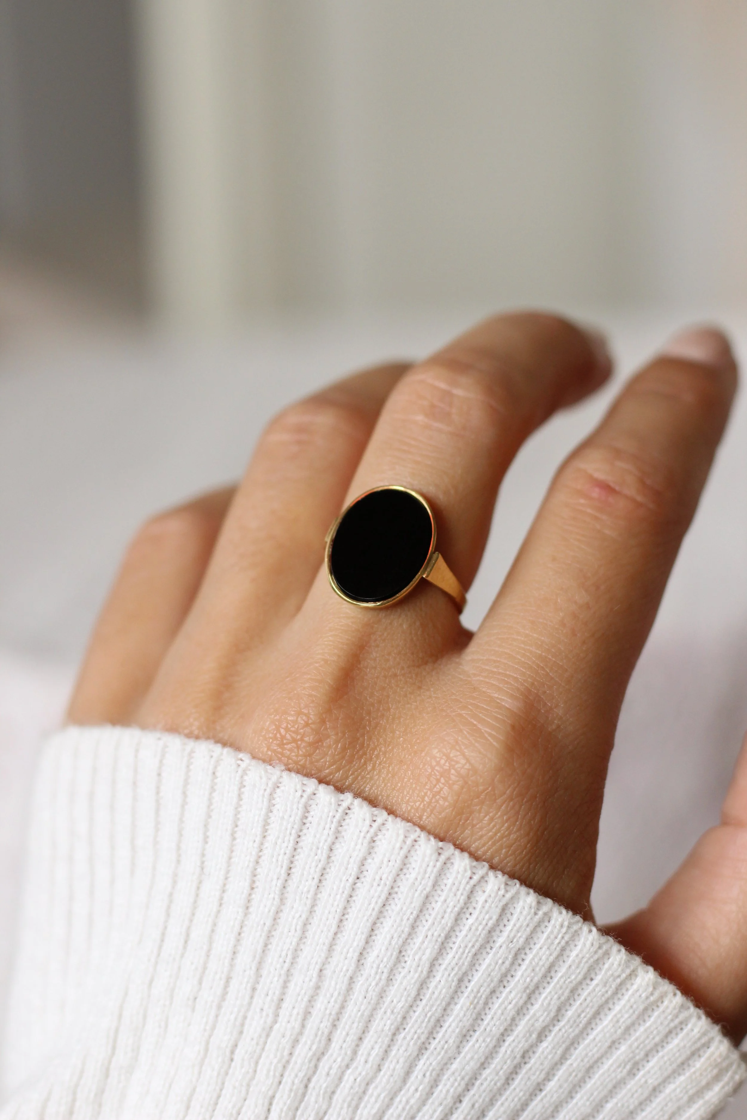 This ring showcases a vivid green emerald nestled in smooth yellow gold. The gem catches the light with a lush, natural brilliance, adding a hint of vibrancy to the ring’s minimalist design. Wear it solo for a touch of color or stack it with the ruby and sapphire rings for a bold, elegant combination.